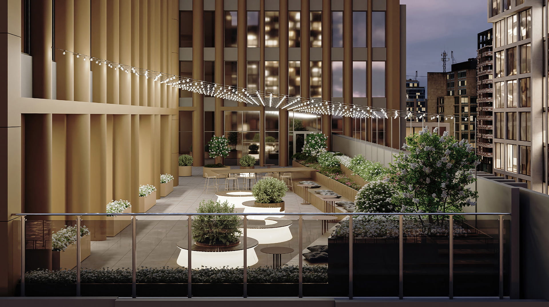 Терраса площадью более 1 тыс. кв. м появится на кровле стилобата на шестом этаже в МФК AFI2B Tagilskaya, который строится на востоке Москвы в районе Метрогородок.