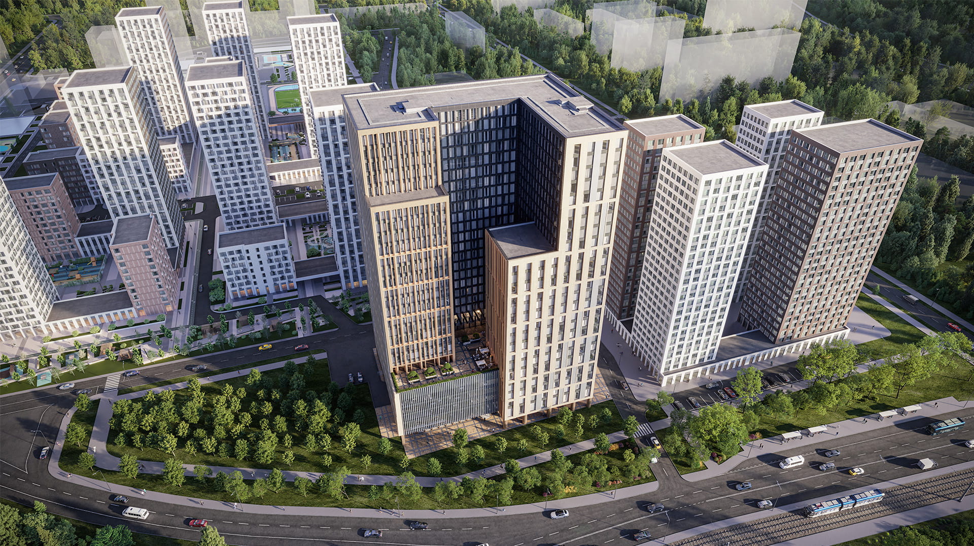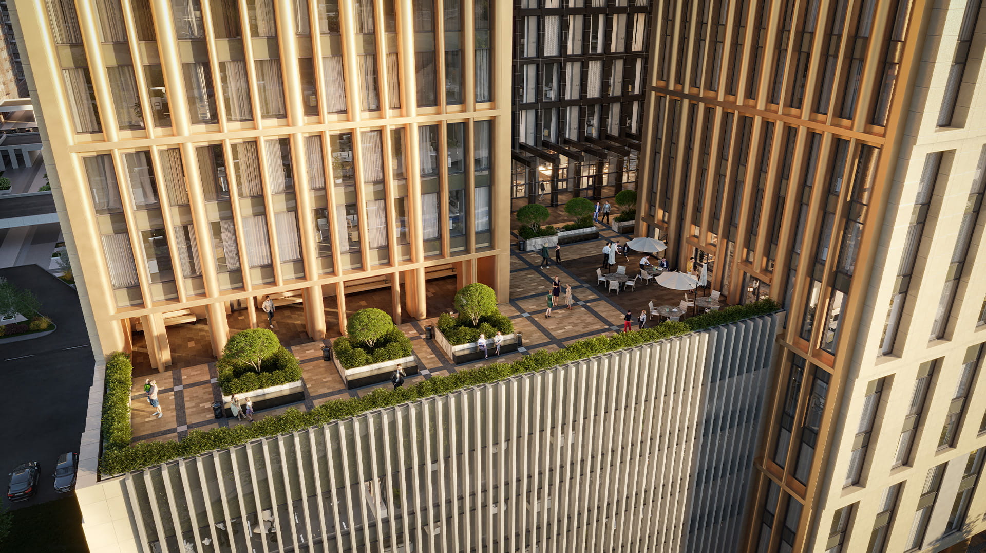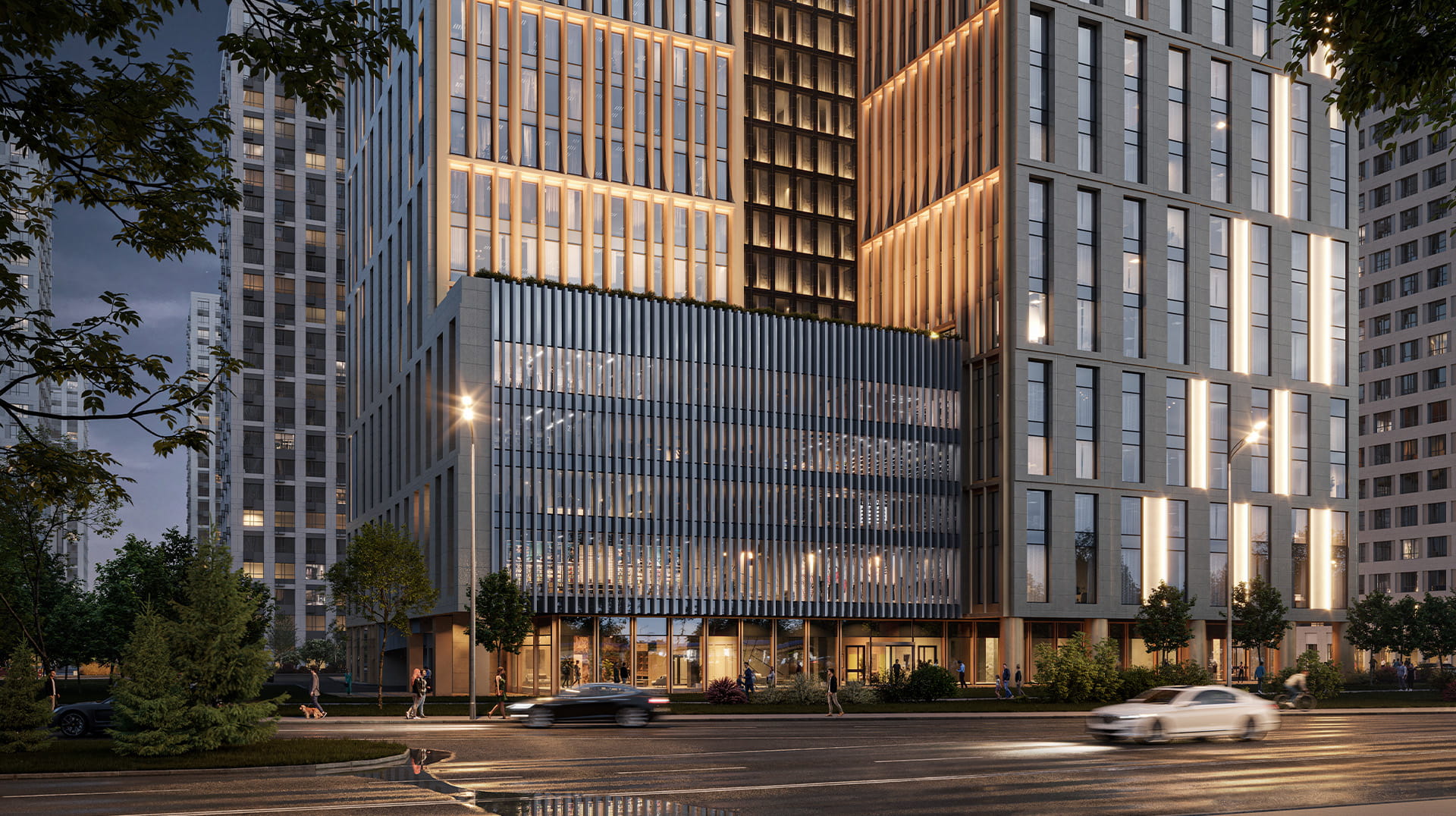 Помимо этого, в составе многофункционального центра предусмотрены торговые площади на первых двух этажах и трехуровневая парковка на 200 машино-мест с возможностью зарядки электромобилей. Инфраструктура здания, дополненная «умными» инженерными системами, зонами коворкинга, кафе и лаунж-пространствами, создаст сбалансированную экосистему для работы, встреч и развития.